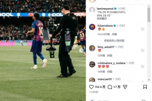 24直播03月01日讯 西甲第26轮,巴萨主场4-1大胜比利亚雷亚尔,小将亚马尔戴帽成最大功臣。此役胜利为球队注入信心,他们将在下周的国王杯次回合主场迎战马竞,誓要实现惊天大逆转。亚马尔也在社媒立下“1%可能,99%信念”的豪言。