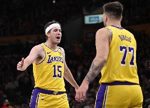 湖人后场搭档里夫斯和东契奇第三节合力砍下30分。