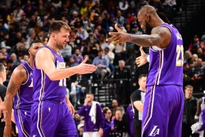 24直播03月15日讯 NBA常规赛湖人加时险胜掘金。赛后,詹姆斯盛赞东契奇的绝杀,称其为“来自一位划时代球员的关键一投”。本场比赛,詹姆斯贡献17分6篮板5助攻,东契奇则拿下30分11篮板13助攻的准三双,并命中了制胜一球。